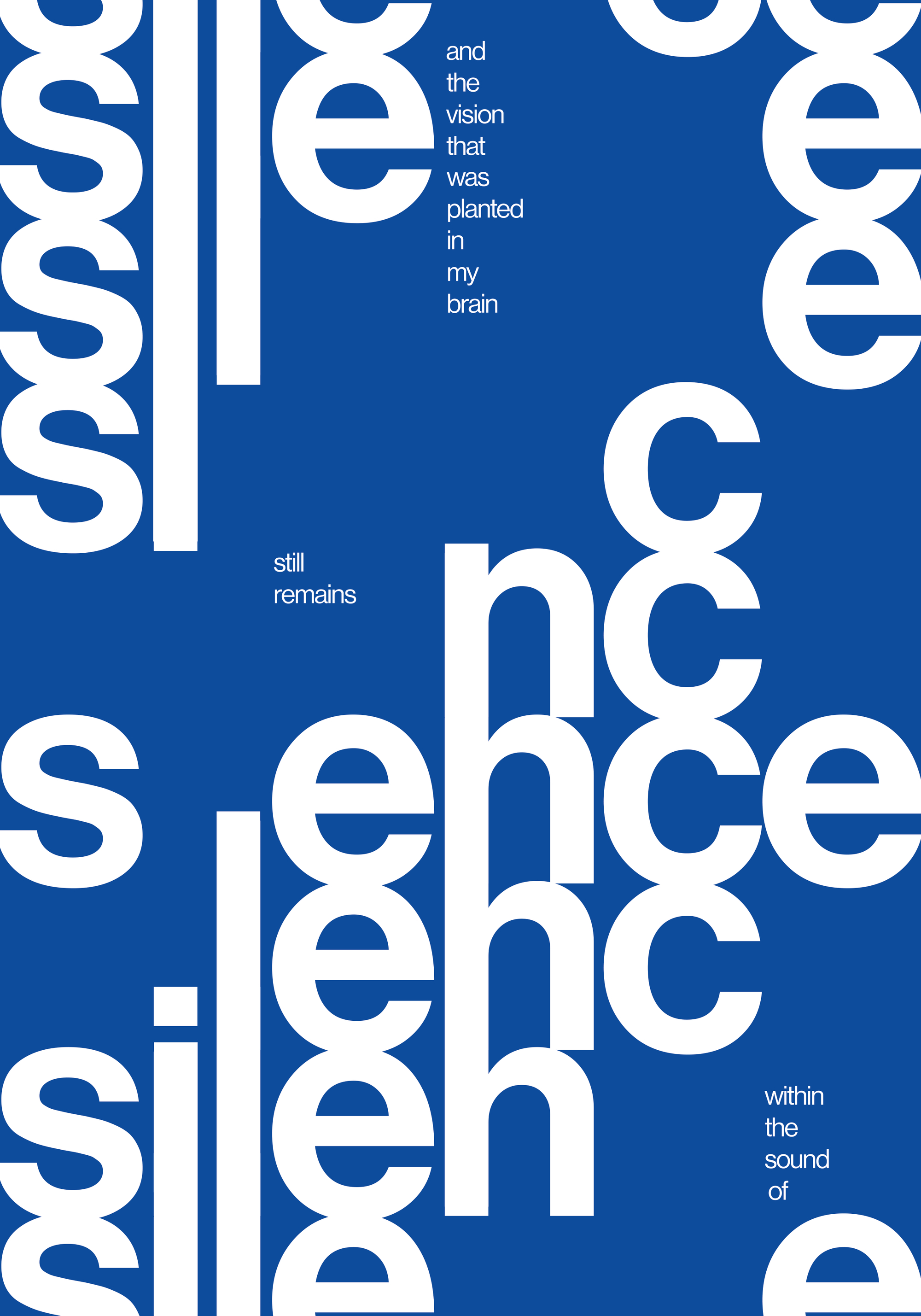 青い背景に白い文字で「silence」と書かれたポスターです。シンプルでモダンなデザインが、お部屋に落ち着いた雰囲気を与えます。