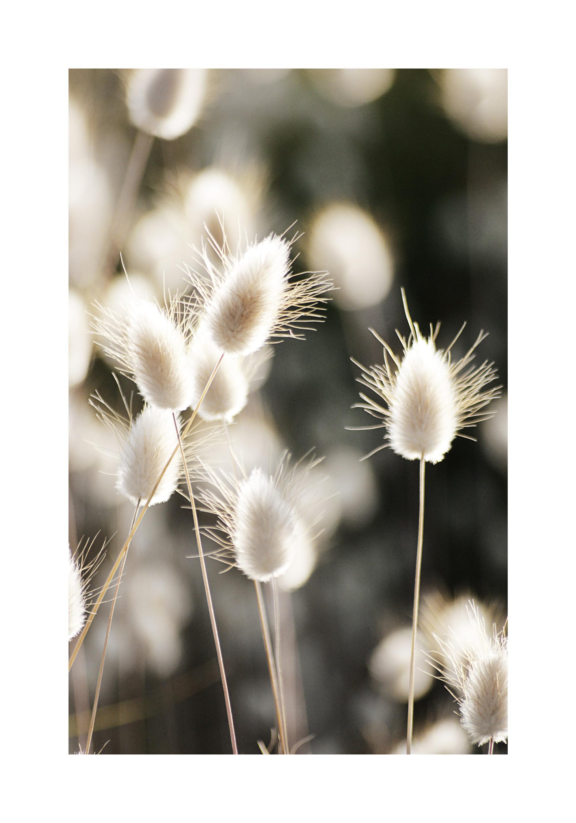秋らしいベージュの草、猫jららしをクローズアップした植物写真ポスター。この写真ポスターで、お部屋にマインドフルネスと優しさの空間を作りましょう。