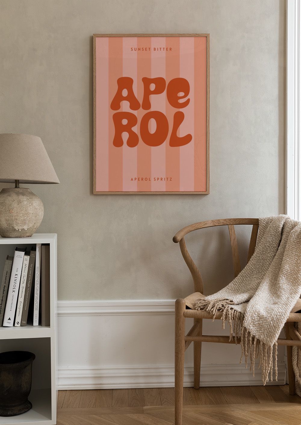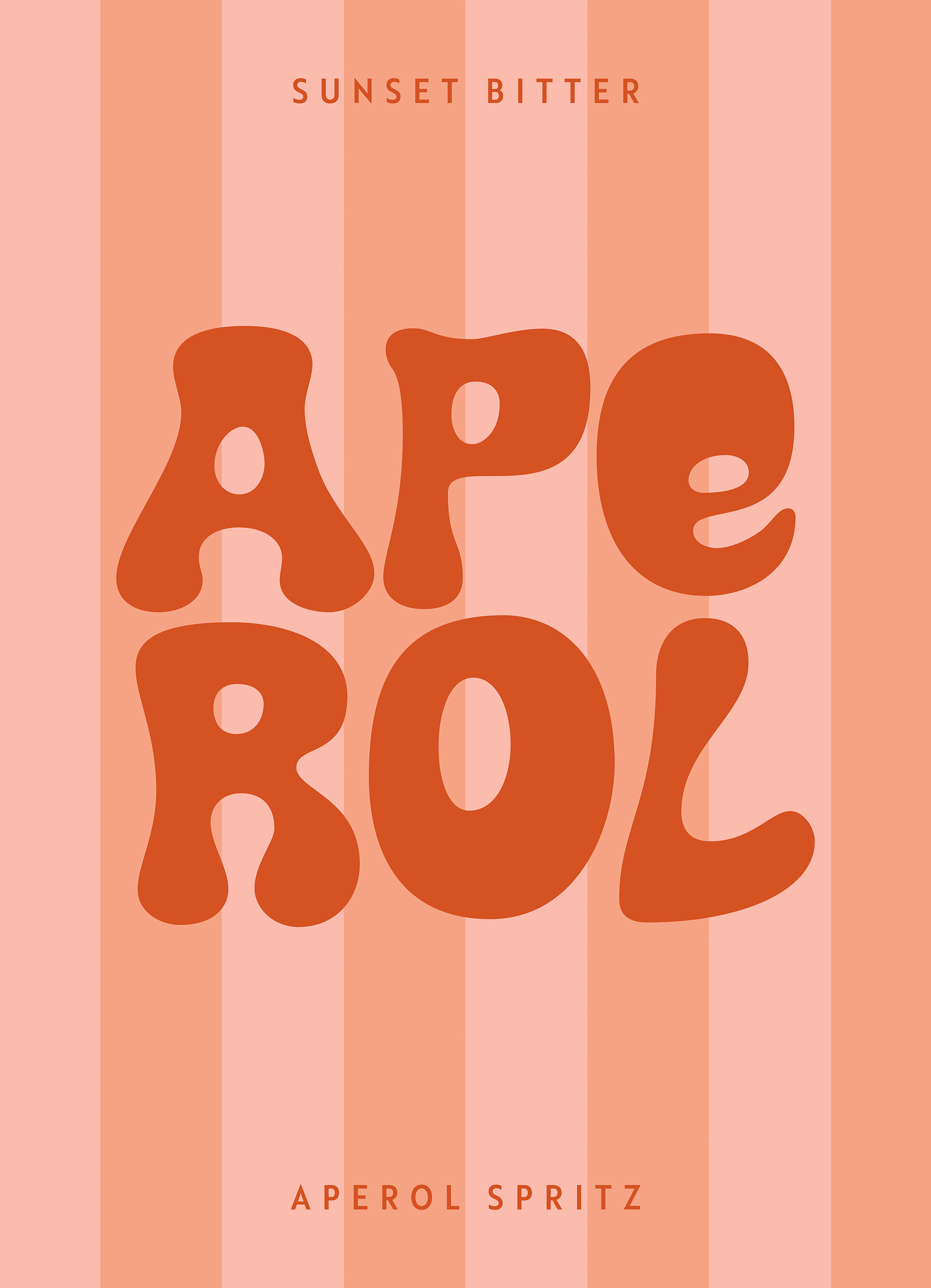 オレンジとピンクのストライプが美しい、アペロールをテーマにしたポスター。明るい色使いで、お部屋を楽しく華やかに演出します。