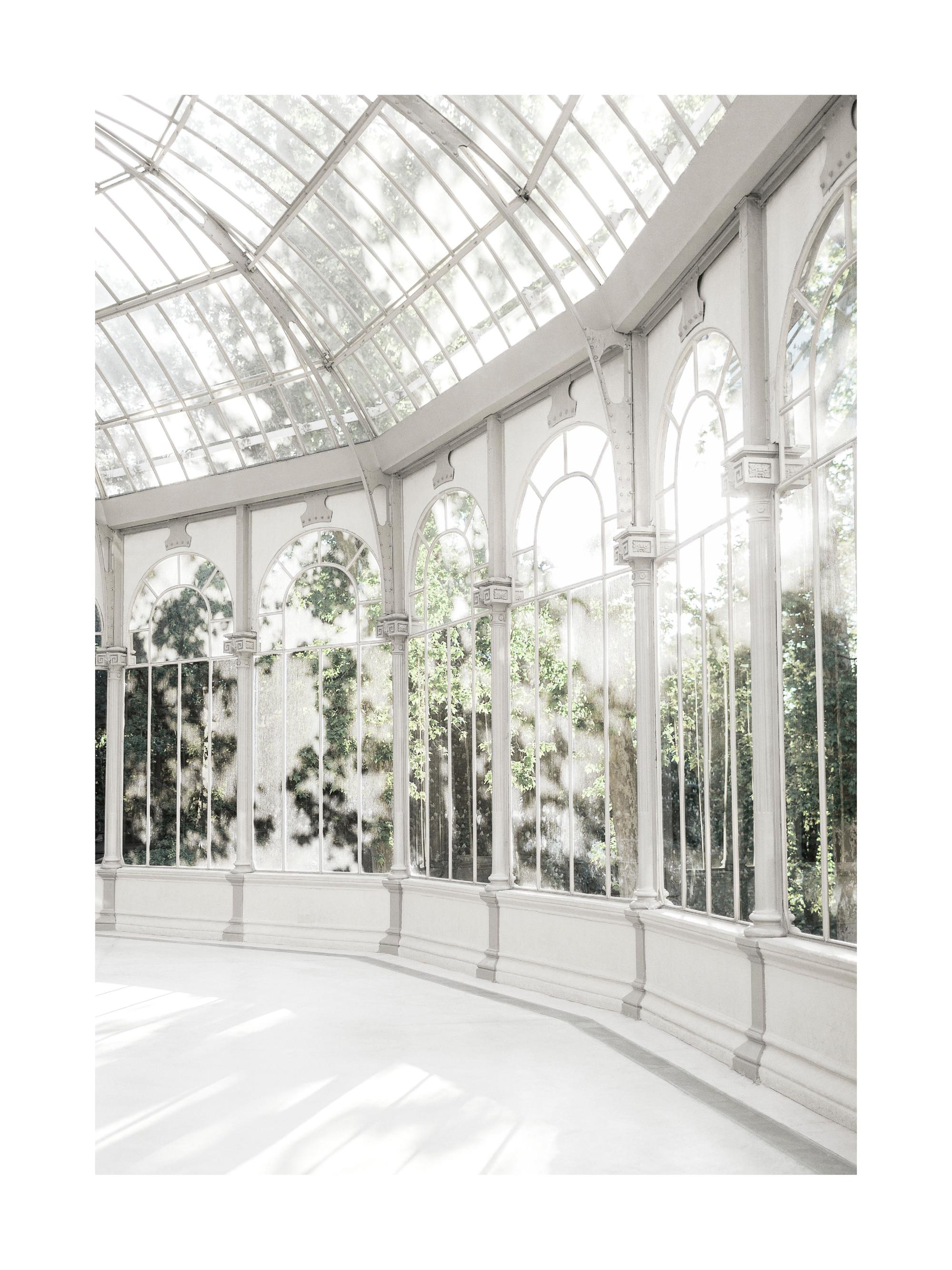 明るい環境と周囲の窓を映す美しい植物温室の魔法のような写真です。このウォールアートはロマンチックな感じを抱かせます。