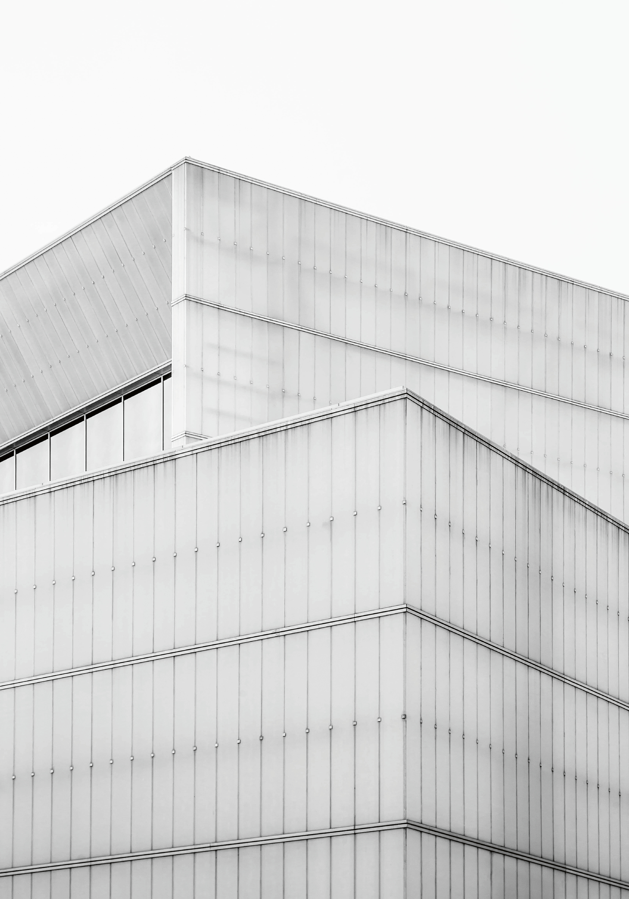 白いパネルと直線が美しい、モダンな建物のポスター。シンプルでスタイリッシュなデザインが、お部屋を洗練された空間に変えます。