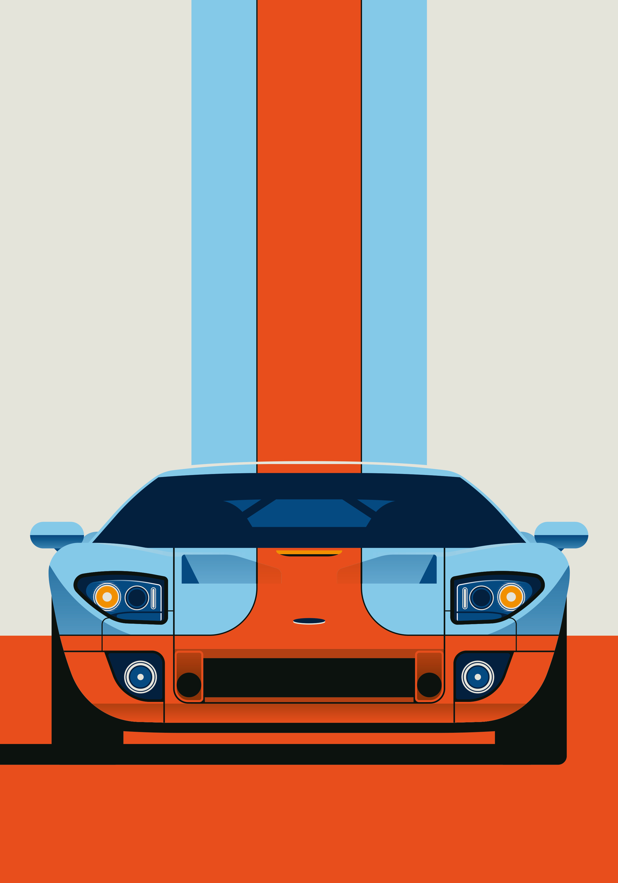 青とオレンジのスポーツカーポスター。丸いライトとかっこいい形。シンプルな色とデザインで、お部屋を明るく楽しくします。