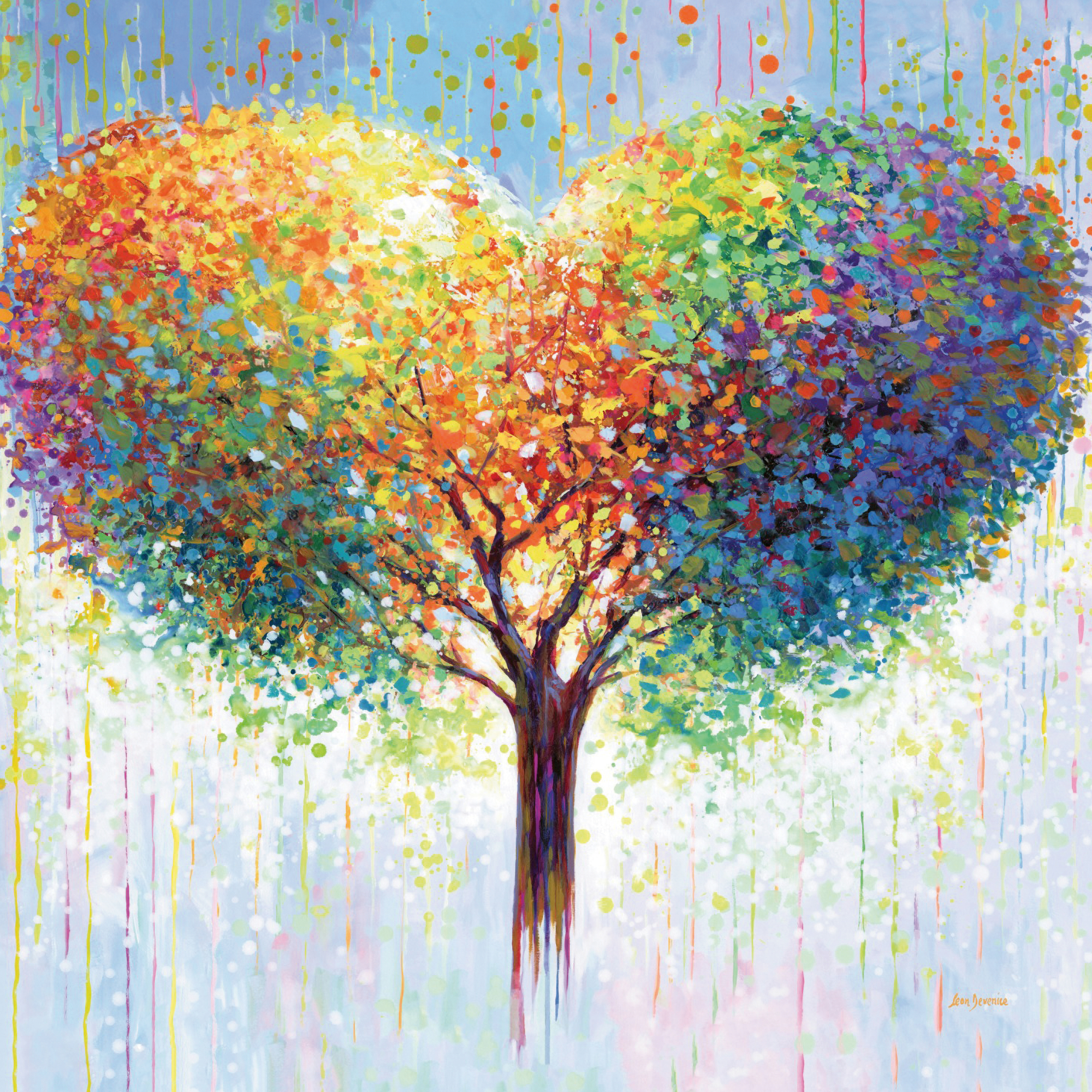 虹色の葉っぱが美しいハート型の木のポスター。明るくカラフルなアートがお部屋を楽しい雰囲気にします。