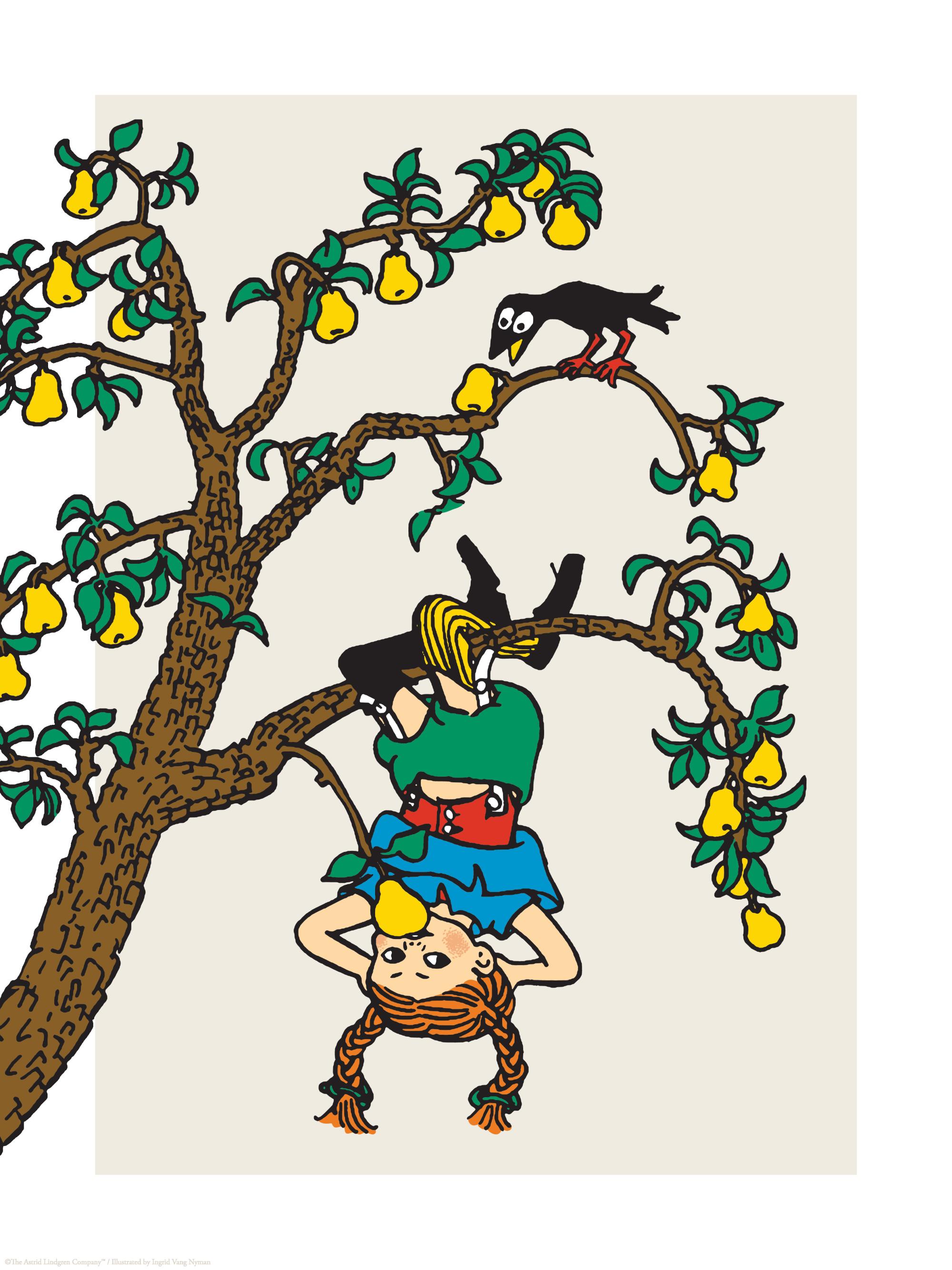 ¥1,409.40からIllustration of Pippi Longstocking hanging upside down on a tree against a beige background. Add this print in the kid's room and match it with other Pippi Lockstocking motifs.